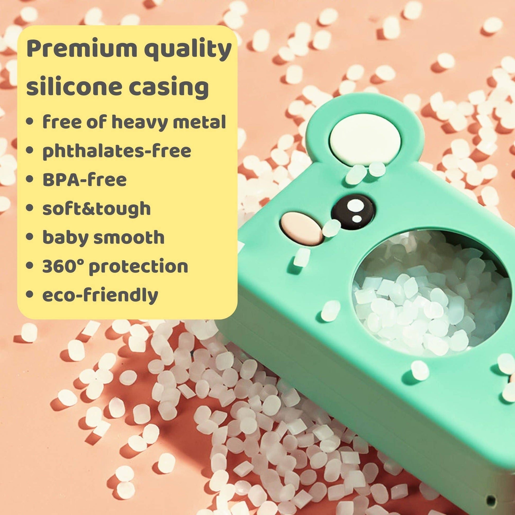 Introducing Model C, the ideal camera for children aged 3 to 7. Its compact design is perfectly suited for their small hands, while the durable, food-grade silicone case withstands energetic play. The versatile lanyard also functions as a charging cable, making it the perfect accessory for family trips. This camera encapsulates all that a budding photographer could desire in their very first camera, from capturing the vibrant hues of Easter eggs to the loving moments of Mother's Day. Meet Mikayo the Bear, a cherished addition to the Model C family. "Mikayo," meaning "beautiful child" in Japanese, perfectly reflects the joy and wonder this camera is set to bring into your child's life, making every holiday and family gathering even more memorable. This camera is an exceptional gift for special occasions, ready to preserve the cherished memories of Easter, Mother's Day, Christmas and many more!