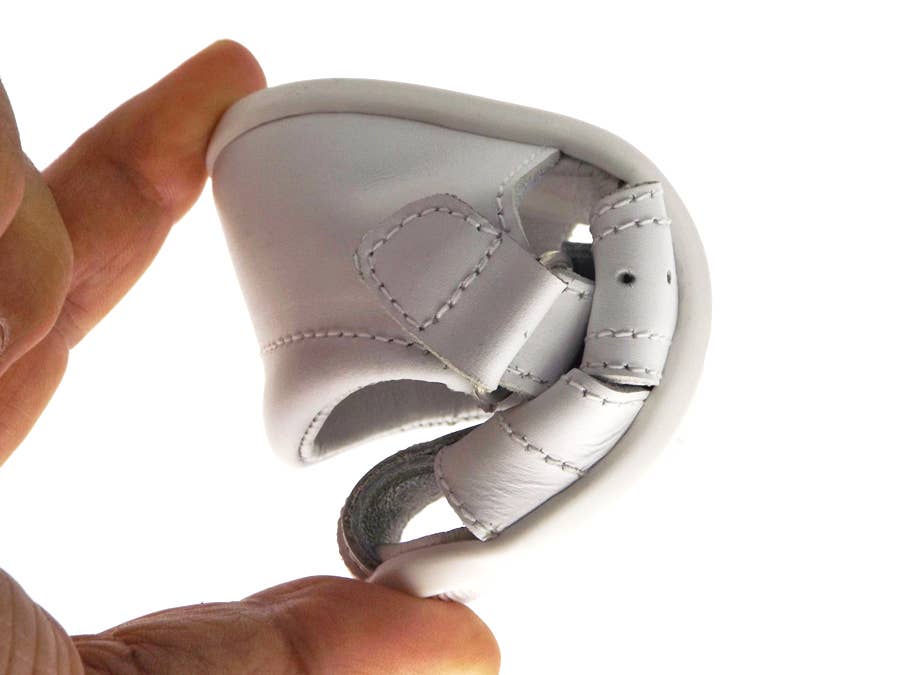 Square fit with no drop and minimal seams. Ultra-flexible and lightweight rubber sole. Velcro closure.